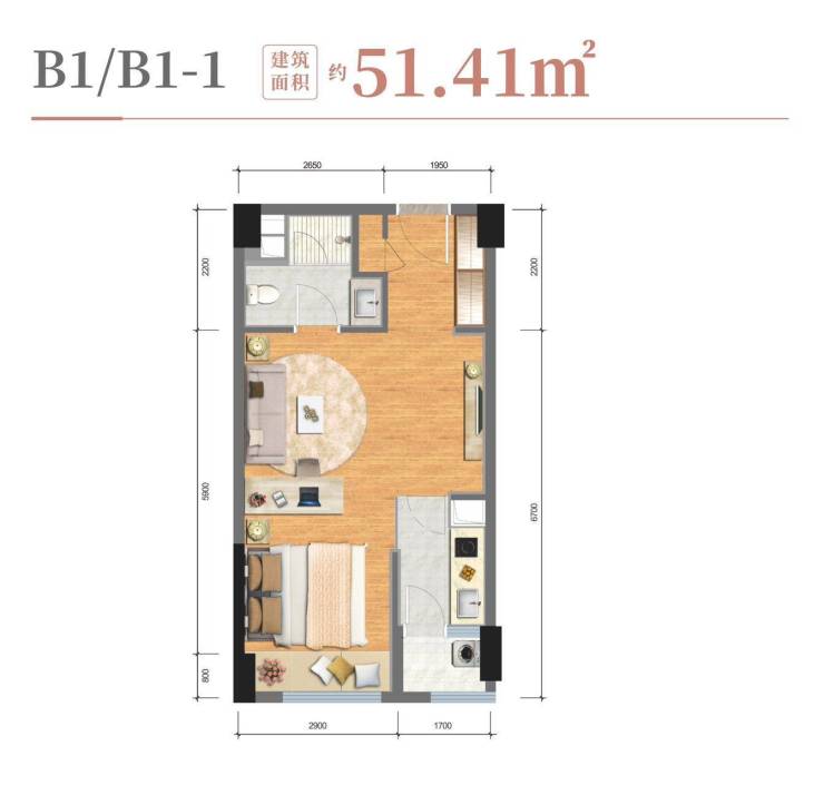 🔸51平米户型开间达到4.6米,超传统公寓市场50平米户型开间约0.6米,舒适采光。
