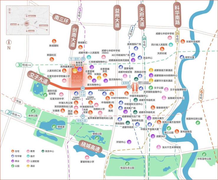 🔸金融城交子大道——成都金融城黄金中轴之上,项目距离城市新地标双子塔仅1.7公里,地铁5号线交子大道地铁口直达!