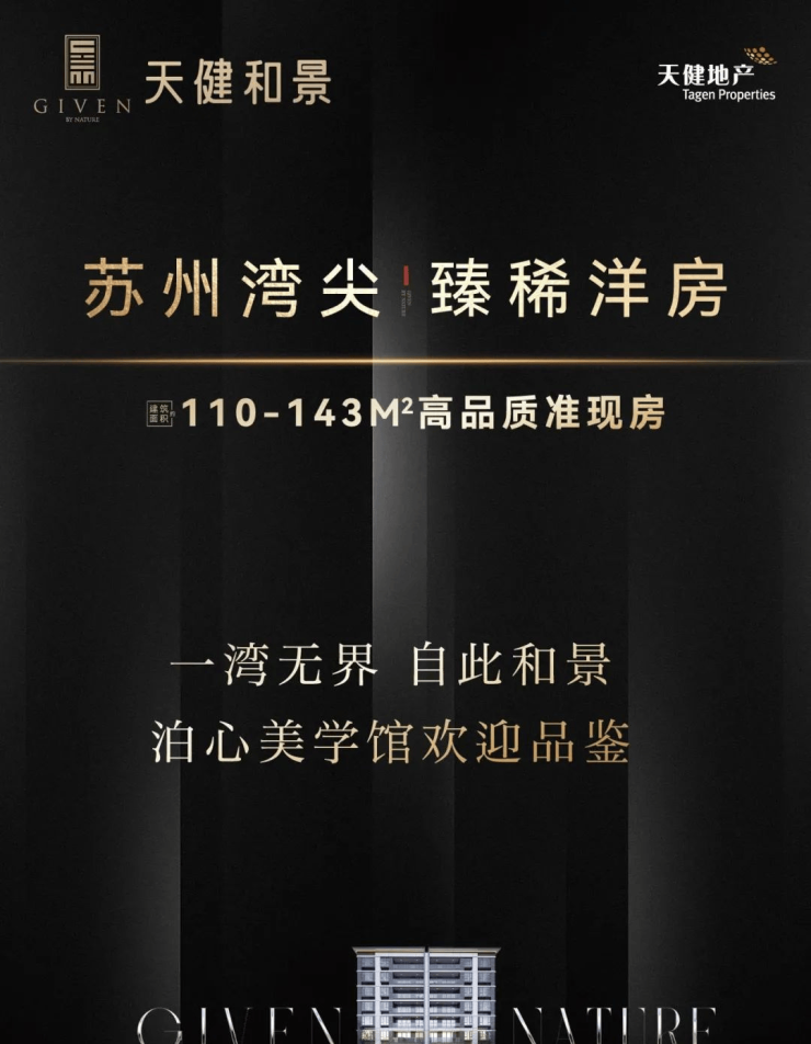 天健和景,雄踞苏州湾尖最后一片臻贵热土,打造容积率约1.2的低密墅居洋房,于太湖之畔,领略无界风光,更以和鸣世界之姿,致敬城市高阶,为苏州湾缔造时代封面。