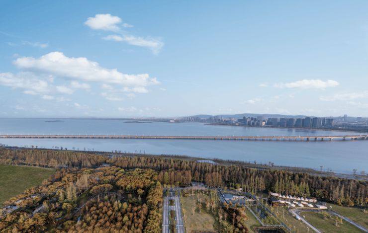 阅湖台如意桥,全长 358 米,从阅湖台广场延伸入东太湖
