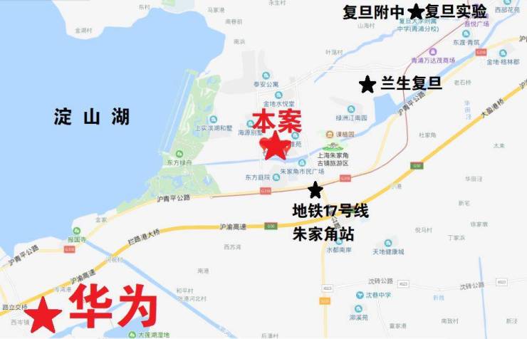中小学:东湖中学(步行约1.8KM)、朱家角中学(步行约2.2KM)、青浦区珠溪中学(步行约2.8KM)、朱家角小学(步行约2.8KM)、在建的兰生复旦学校青浦分校(步行约4.0KM)、等;