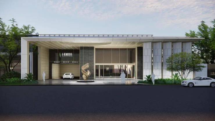 重新升级的大门采用金地独有的“归家院子”模块,人车分流设计,约30米宽、约9米高,恢弘气派。加上大门上方约7米高、10米深的超大尺度悬挑雨棚,配合门前艺术品雕塑、花园绿植,升级为一个媲美五星级豪奢酒店的归家大门。