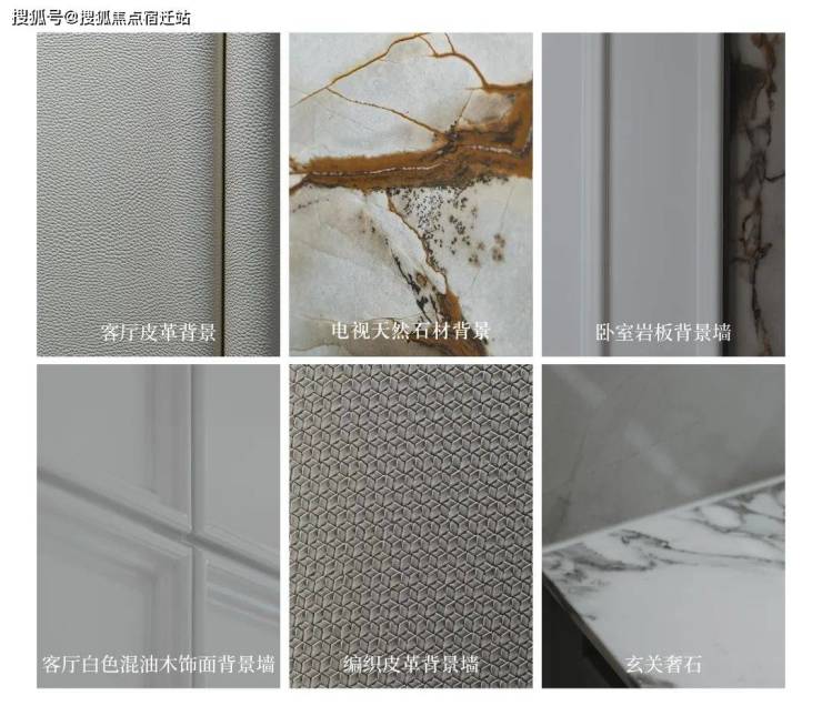 背景墙比别人更多一点。天然石材的电视背景墙,高级大气;编织皮革的客厅背景墙,充满质感;过度用的是白色木饰纹的背景墙,简约耐看;餐厅处又是白色皮革背景墙,大方优雅。整个空间过渡自然,增加了层次感和高级感。