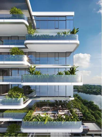 空中云墅:汲取扎哈・哈迪德灵感,100%极致窗墙比,约3.35-3.45米奢阔层高,最大综合得房率超110%,以国际前沿审美为底色,锻造先锋美学立面
