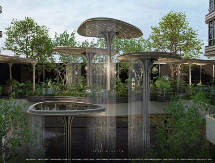 另外,项目地上三分之二的楼栋有架空层,最高层高约4.5米,合计约3000㎡架空层作为泛会所,在室内外交叠过渡的空间中,以自然之景点缀,营造全龄共享的丰盛聚场。