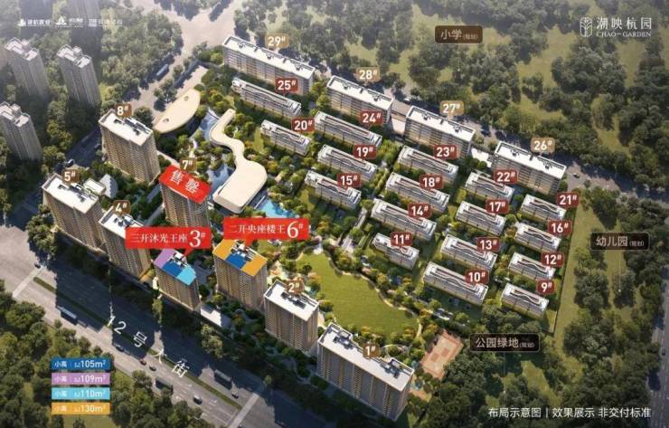 墅区小高层建筑面积约105-130㎡,为最大化景观面,突破性设计建筑面积约105㎡南向四开间。
