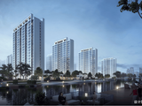 泗泾绿中海占地4.7万方,由9栋16-30层的新中式住宅组成。项目外立面采用的是天然石材和真石漆,屋顶采用四面斜坡设计。