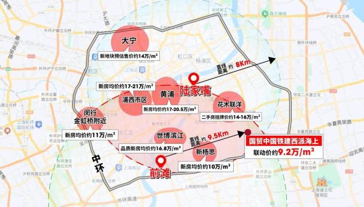 1. 内环旁2公里,陆家嘴开车仅8公里**