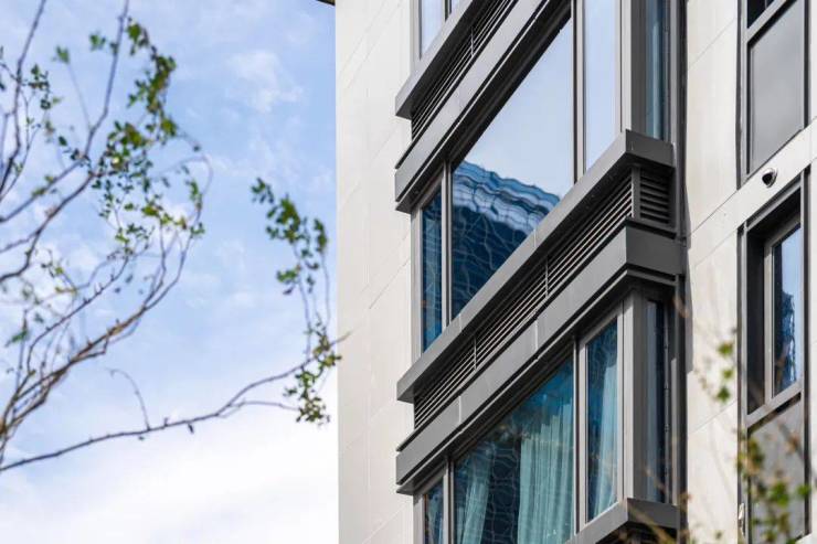 玖晟园整体以国际性、时尚性为定调,外立面采用铝板保温一体板+三玻两腔LOW-E玻璃等产品材料,从设计环节、材料供应、施工过程全方位接轨国际豪宅的营造标准。超大窗墙比设计,更具通透采光性和通风性,以接轨国际前沿审美和产品营造标准呼应嘉兴向前的国际澎湃精神。