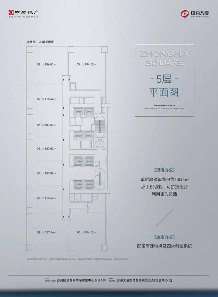 单层建面约1300㎡,单套约109-194㎡,灵活适配企业不同需求。