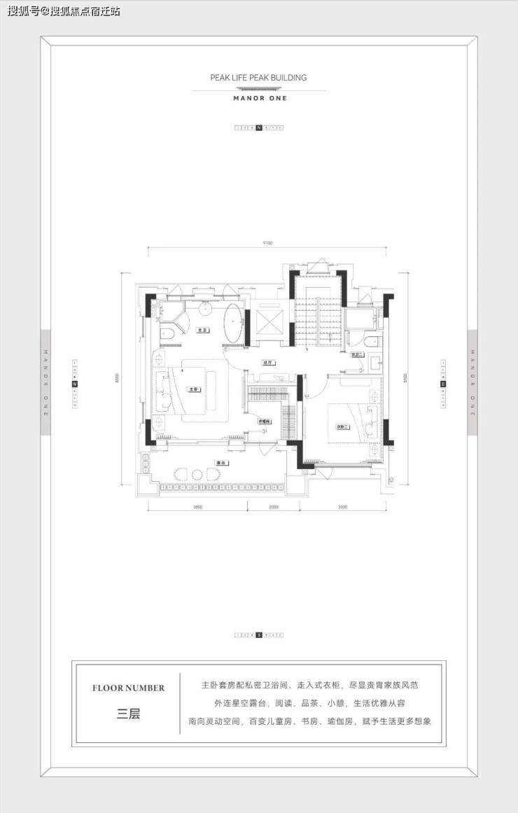 二三楼可以设计为次卧+次卫+超大套房的功能布局。套房中,放得下浴缸的卫生间和走入式衣帽间,才是「享受生活」的最佳标准。而南向的景观露台,则是赏花观景、沏茶品茗的私享天地。