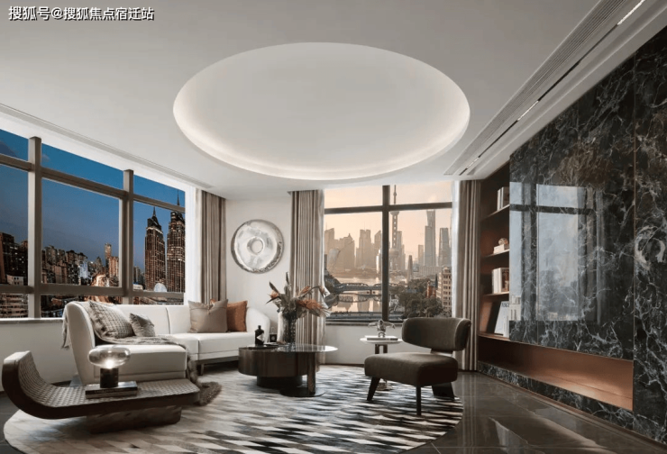 所在楼层,高耸入云。躺在床上即可饱览上海“一江一河”的经典地标,睁开眼睛即可感受到内环老城厢的闹忙、烟火气……在家就能看陆家嘴三件套的日出日落、苏河湾上工作游船的来往如织。