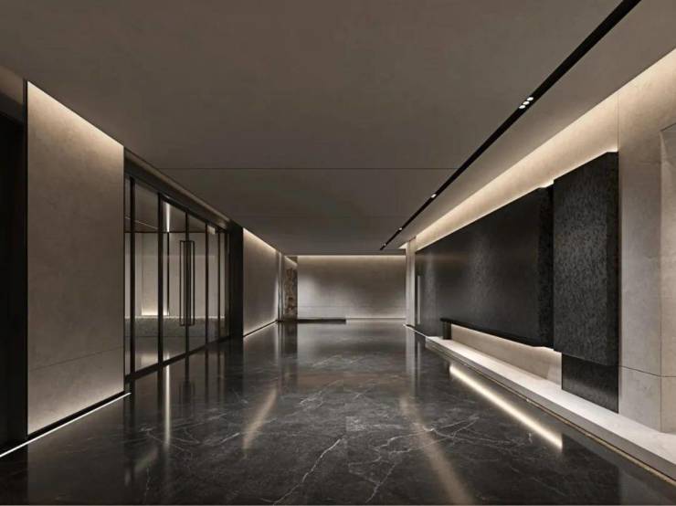 【国际大堂】双层挑高奢办公大堂,层高约11.4米,尽显国际商务气场;大堂由全进口奢石材铺贴,彰显名企尊贵气派