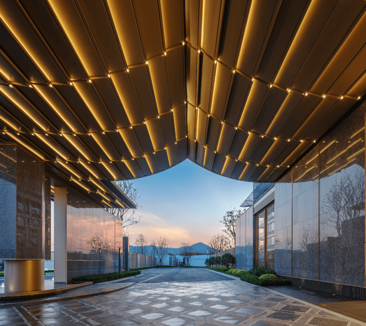 整个项目的建筑、景观、室内相互影响。在建筑设计中,确实展现出了室内外交织的空间特点,这种设计不仅增强了建筑的交互性,也使得建筑与景观之间形成了和谐而富有层次的关系。执笔过无数豪宅的设计天团GLA(建筑)+GTS蓝颂(景观),保证了璞御栖湖府的审美品质。