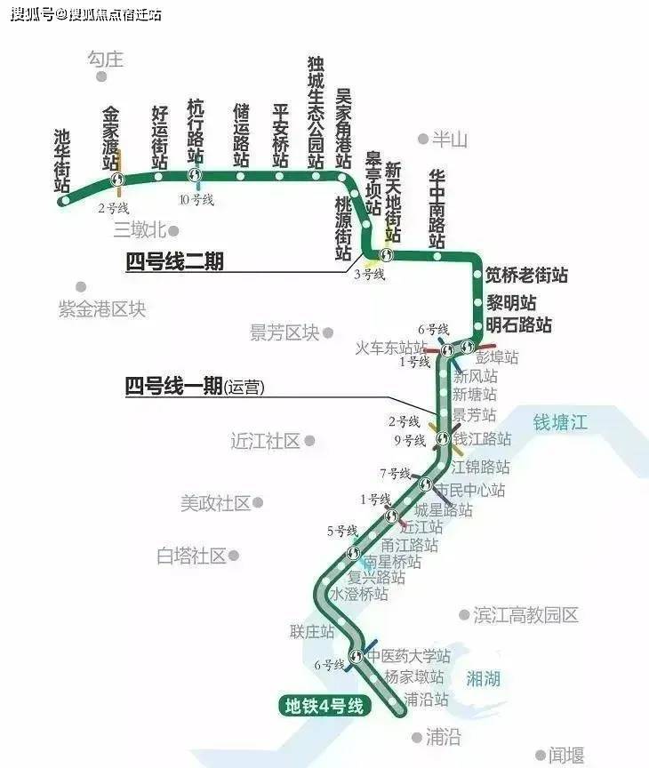 地铁4号线:向西2站可达城北万象城,向东5站可达新天地商圈,11站可达杭州东站,再往南衔接钱江新城、望江新城和浦沿。