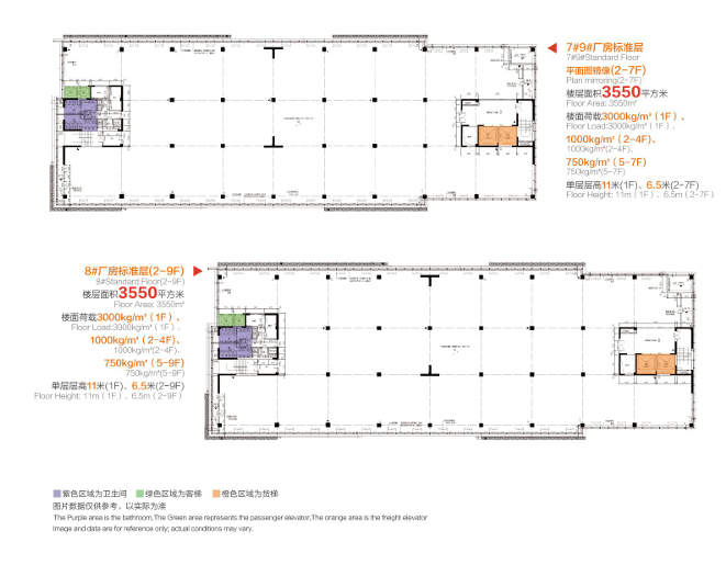 【层 高】首层8m-11m,2F4.5m,3F及以上4.2m