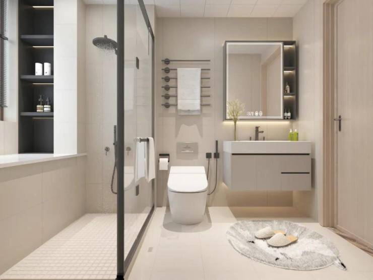 卫生间更是精致到了五金,定制台盆柜、高端浴霸&马桶,方寸之间映现从容奢享的私谧领地。