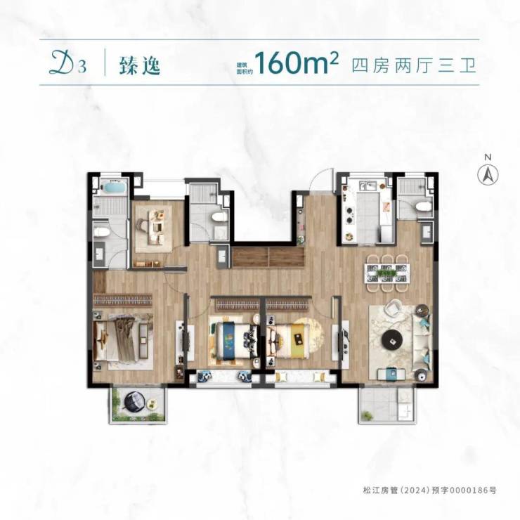 精致的生活永不过时,沿袭国际居住理念,融合潮流风尚和高贵气质重塑优雅墅居场景,卧室与客餐厅以实木复合地板呈现原木风居境的柔和温润,配备高品质智能门锁,呈现更具温度又矜贵高雅的墅居生活;
